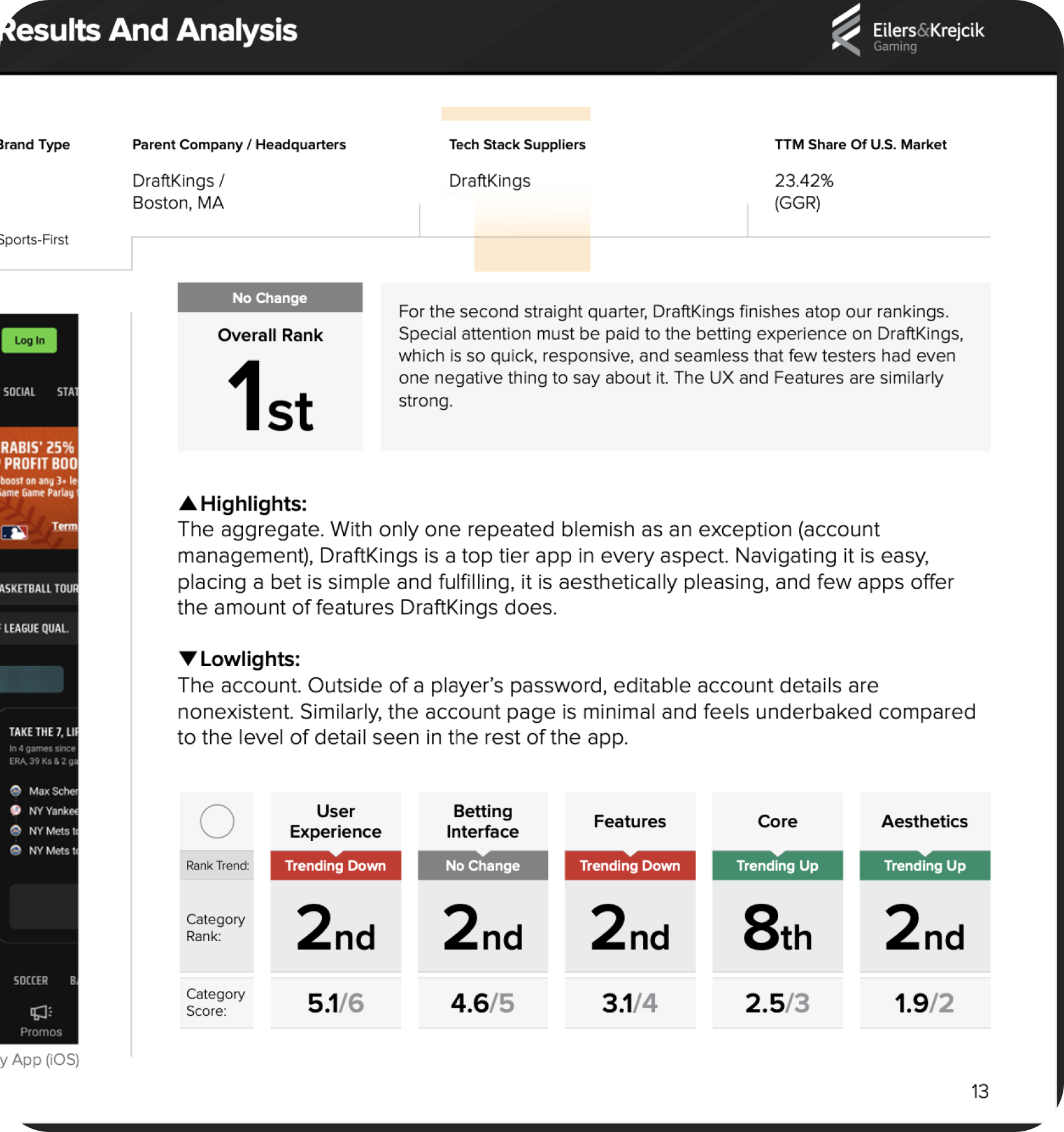 We went straight to the source of customer feedback and aggregated feedback through our internal team. And lastly analyzed our scores from the industries independent online gaming report (Eilers).